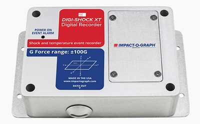 DigiShock Impact-O-Graph data logger records impacts and temperature during the shipping process as well as being reusable. The Digi-Shock G data logger only records impact while the Digi-Shock GT recorder records both impact and temperature. The G-force range available in Digi-Shock G/GT are 25 G or 100 G.